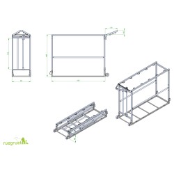 Der feuerverzinkte Stahlboden sorgt für hohe Stabilität, während der Aufbau aus eloxierten Aluminiumrohren das Gewicht niedrig hält und Korrosion sowie Abfärbungen verhindert.
